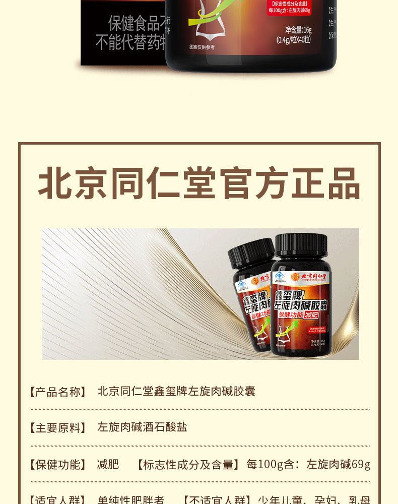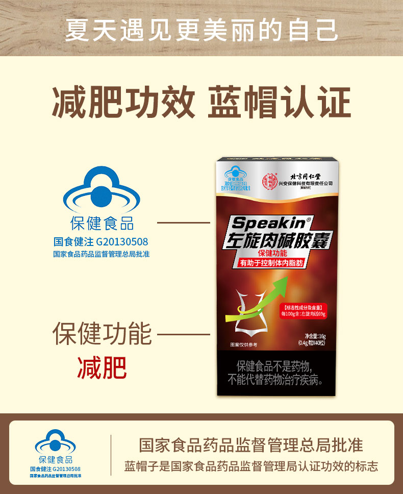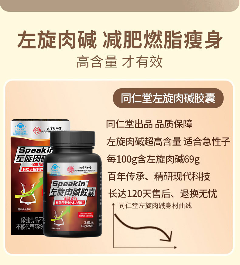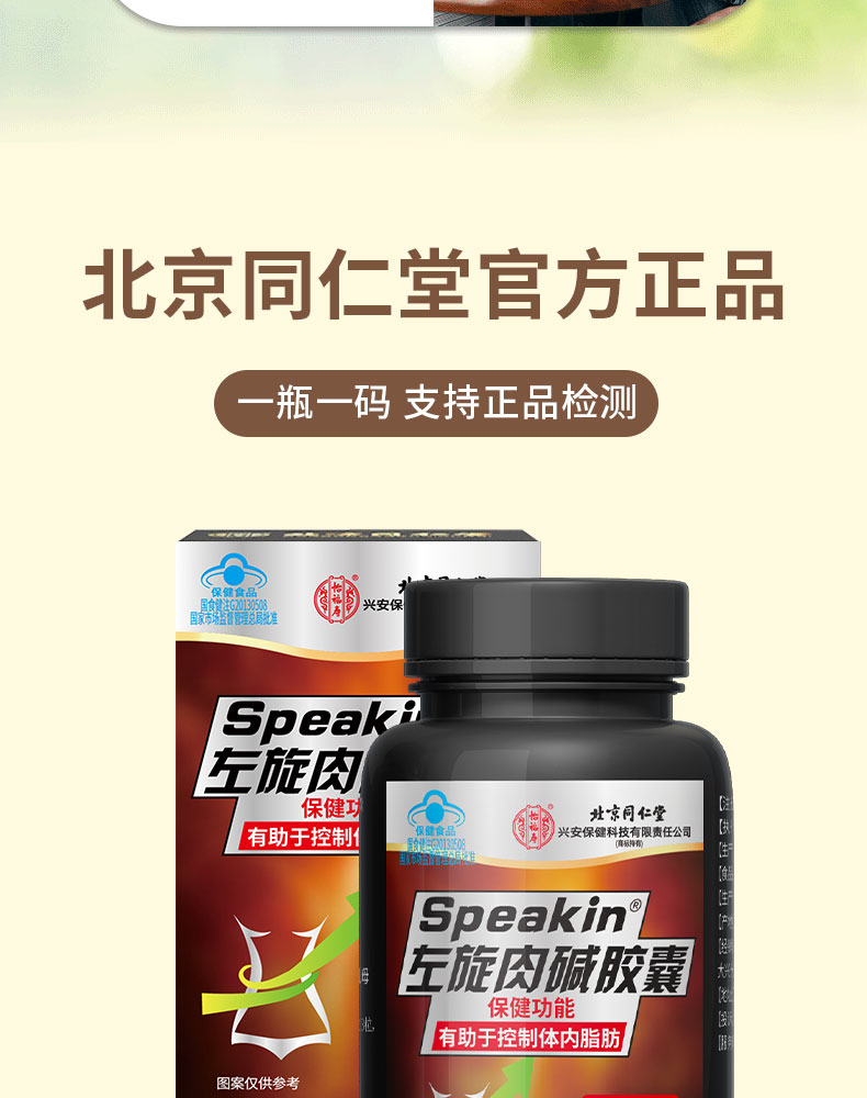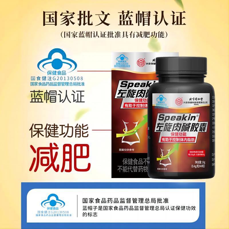 北京同仁堂怡福寿Speakin®左旋肉碱胶囊16g(0.4g/粒×40粒)/盒