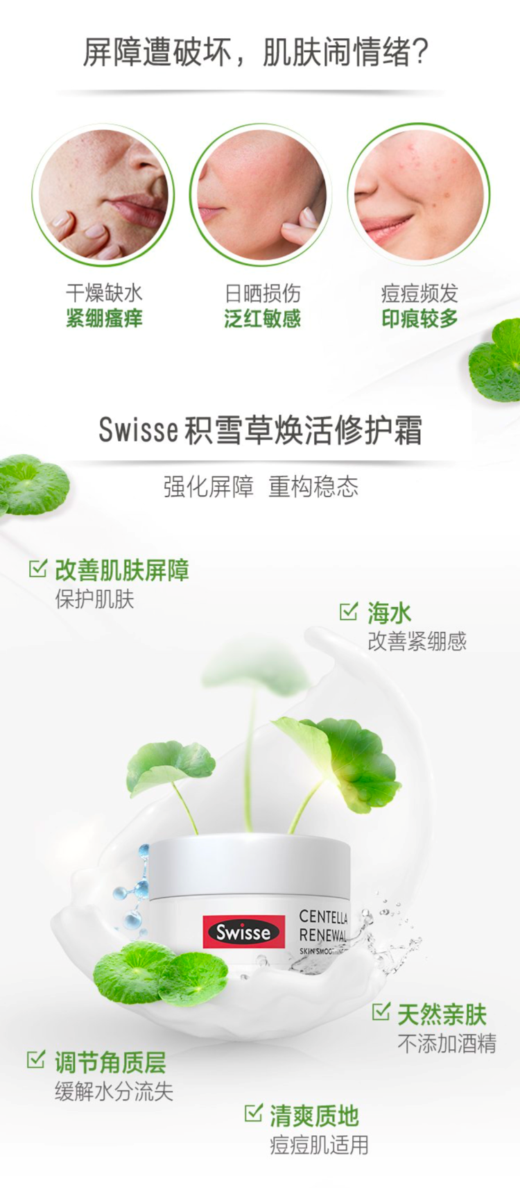 Swisse 积雪草焕活修护霜 补水保湿滋润舒缓面霜敏感肌 55g