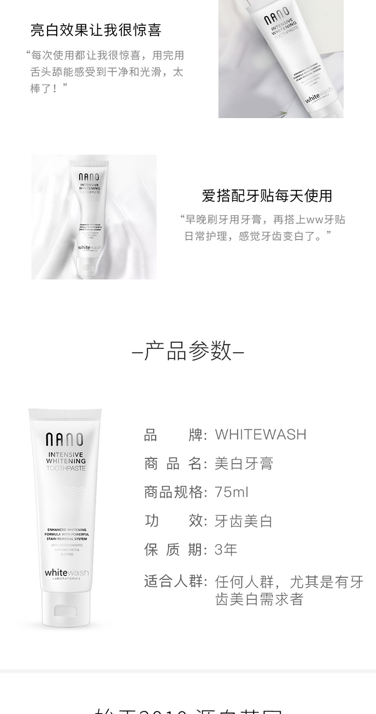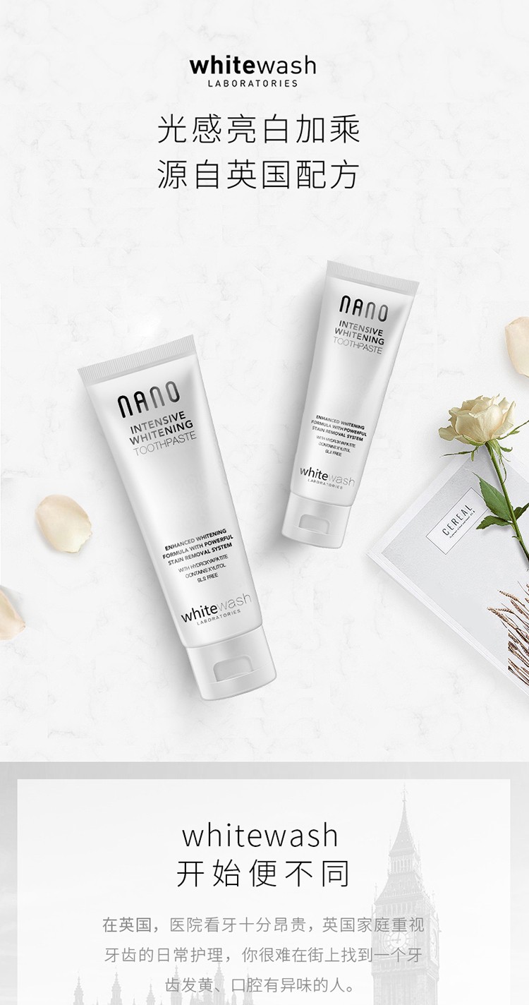 Whitewash Nano美白牙膏去牙黄牙渍3支装