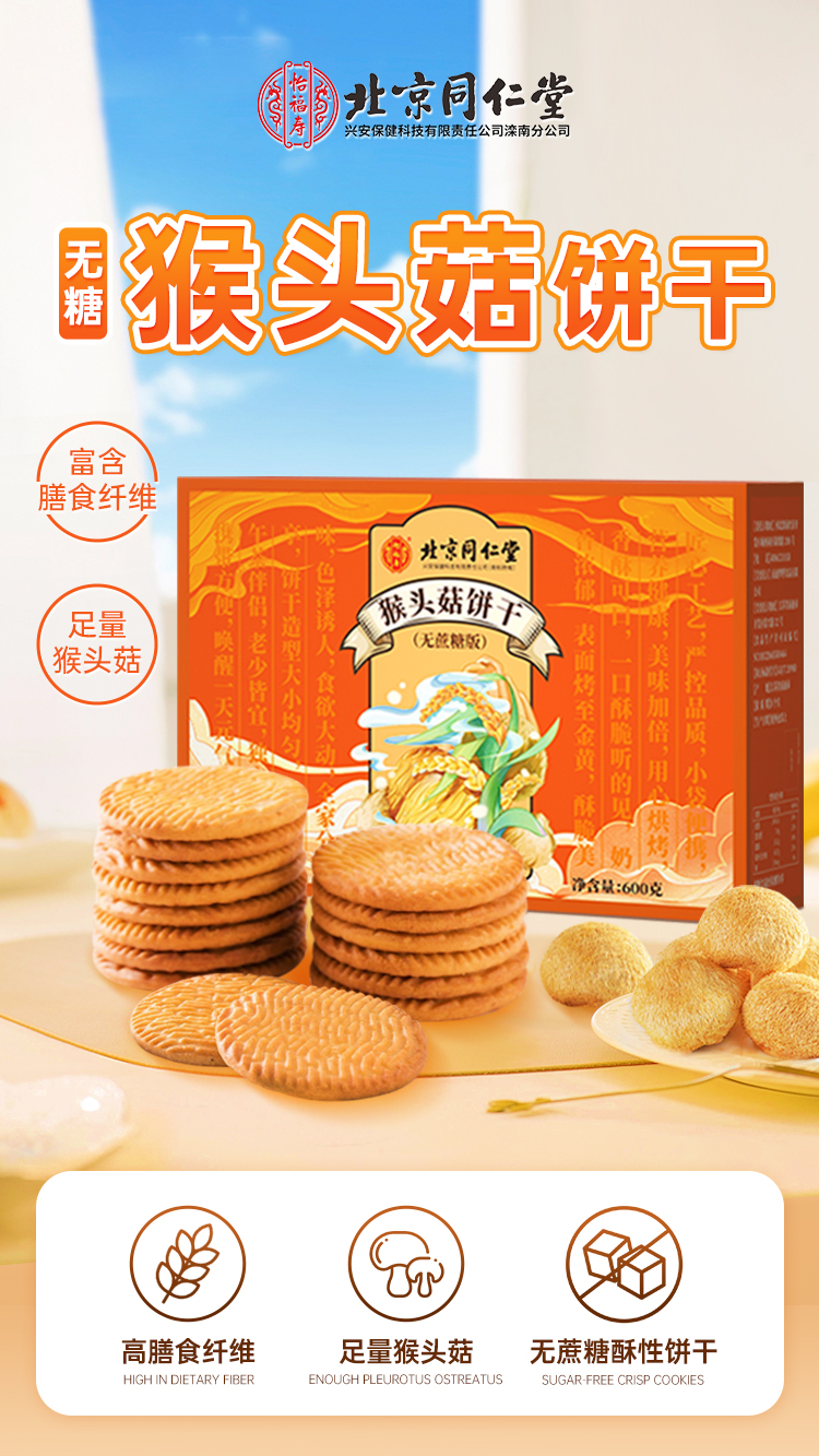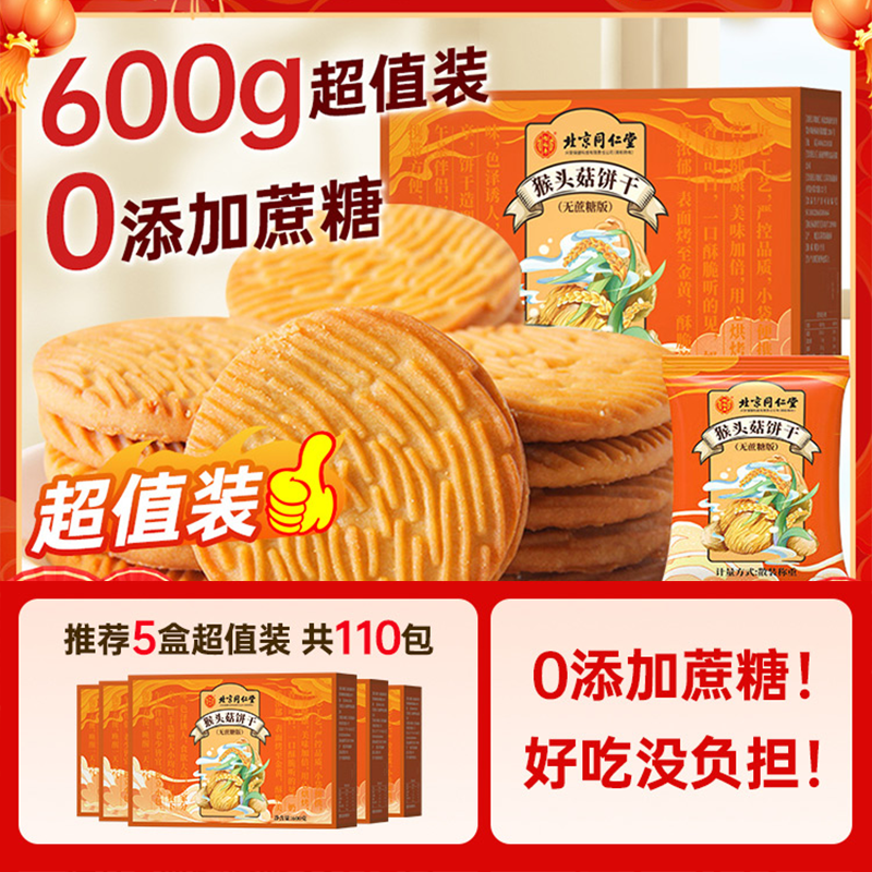 北京同仁堂怡福寿猴头菇饼干600g(28g*22袋)盒
